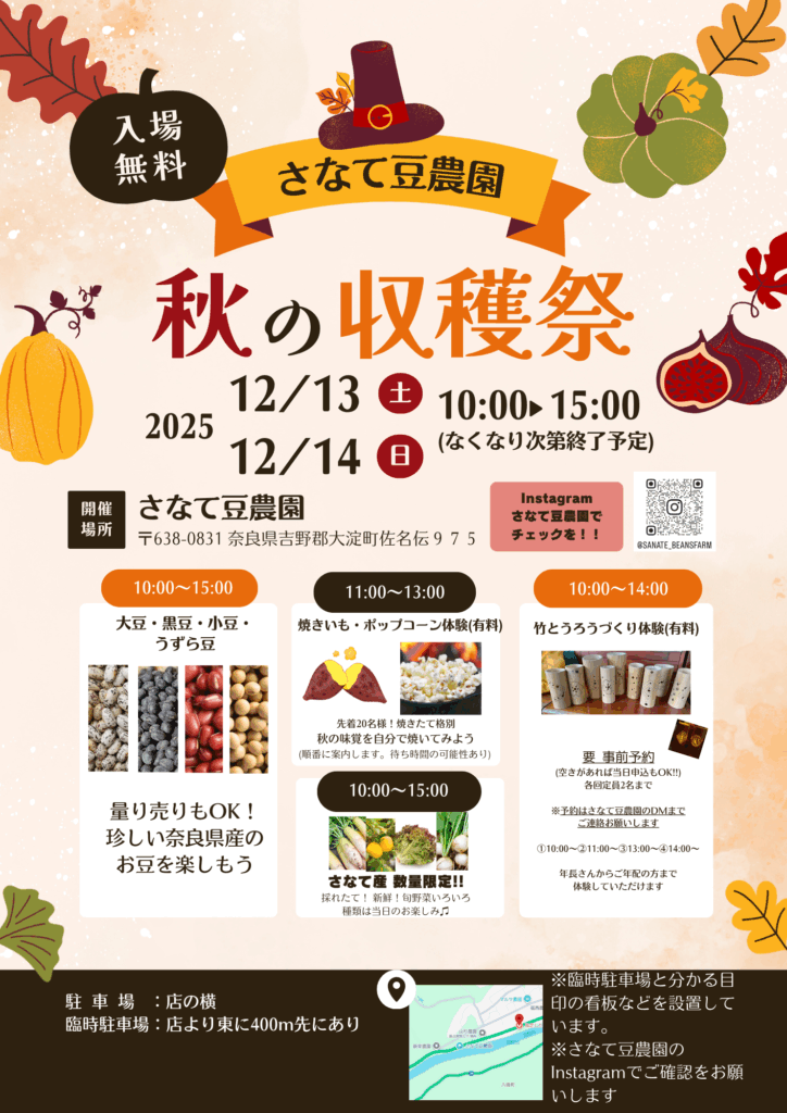 さなて豆農園特別企画、「秋の収穫祭」を開催します。